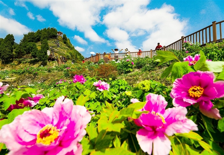 截至目前,我县共种植牡丹2万余亩、芍药5000亩,品种有太平红、千层香、悠山艳等60余种,花型大、花姿美、花期长,分布在山、水、石、林、云、岚间,浑然一体、相得益彰。