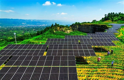 7月5日,砚台镇太安村,已投用的“农光互补”光伏电站运行良好,农户在光伏板下管护豆苗。据介绍,“农光互补”光伏电站项目是将能源发展和乡村振兴相结合,利用太安村荒山地建设小型光伏电站,打造“板上发电,板下种植”的“农光互补”产业。该项目年发电量超30万度,实现村集体经济纯收入12万元以上,每年可相应减少二氧化碳排放量200余吨,助推村集体经济走上生态优先、绿色低碳的高质量发展道路。记者 龚长浩 摄