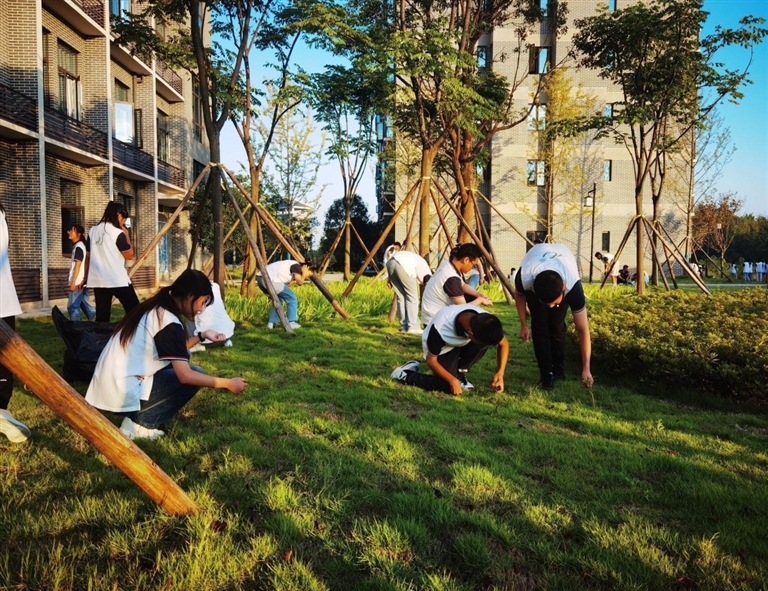 “杂草都要拔掉,以免影响果蔬的长势。”在西湖小学劳动实践基地里,劳动教师带着学生们除草、修整基地。同学们分工合作,认真学习浇水、除草、松土的技巧,尽管全身是汗,也没人叫苦叫累。短短四十分钟的劳动课,让孩子们迅速融入校园。