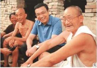 图④:2003年8月8日,李克强同志在河南省新乡市调研。这是李克强同志在原阳县桥北乡马庄村与村民亲切交谈。 郭 宇 摄 (新华社发)