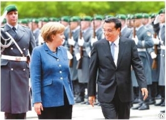 图⑥:2013年5月26日,李克强同志在柏林出席德国总理默克尔举行的欢迎仪式。 新华社记者 马占成 摄