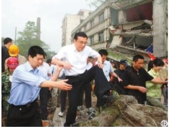图⑧:2008年5月19日,李克强同志在四川地震灾区察看灾情。 新华社记者 兰红光 摄