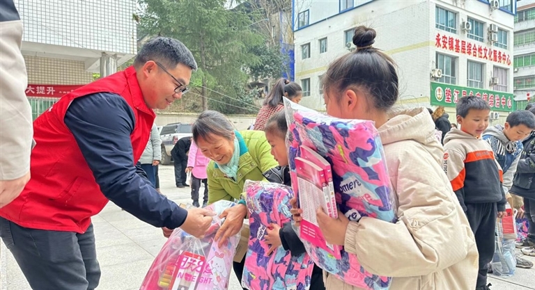 1月13日,永安镇开展2024年迎新春关爱未成年人活动,为困难儿童捐赠学习用品和生活物资,让他们感受到政府的关心关爱。