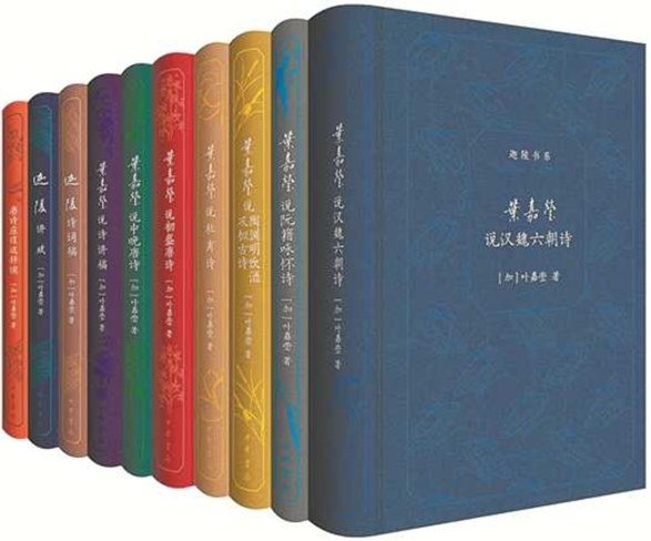 这套“迦陵书系”(百岁典藏版),包括《叶嘉莹说汉魏六朝诗》《叶嘉莹说阮籍咏怀诗》《叶嘉莹说陶渊明饮酒拟古诗》《叶嘉莹说杜甫诗》《叶嘉莹说初盛唐诗》《叶嘉莹说中晚唐诗》《叶嘉莹说诗讲稿》《迦陵诗词稿》《迦陵讲赋》《唐诗应该这样读》10种图书,涵盖了叶嘉莹先生的学术论著、教学讲义和个人诗词作品,也有专为青少年所写的普及读物,系统呈现了叶嘉莹的诗学思想,是“中华诗教”当代传承、当代文史研究和文艺创作领域的重要成果。