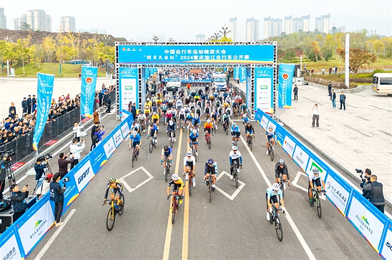 本报讯   (记者   张瀚月)10月27日上午,“明月天香杯”2024重庆垫江自行车公开赛开赛,吸引了来自国内外的五百余名运动员和骑行爱好者参赛,共同展开一场速度、技巧与耐力并重的竞技。