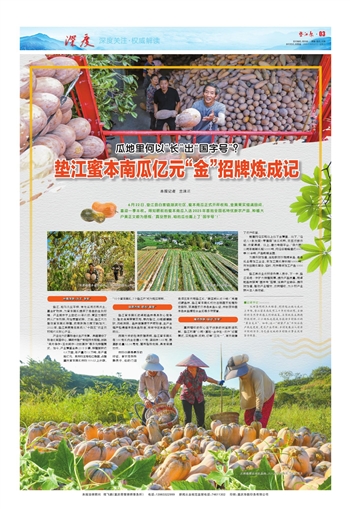 市场口碑是最好的印证。餐饮老板张麟表示,他的门店连续五年只用垫江瓜,“顾客就认这个味!”凭借过硬品质,垫江蜜本南瓜成功注册国家地理标志商标,获得国家级绿色食品认证,并斩获中国绿色食品博览会金奖等多项荣誉。