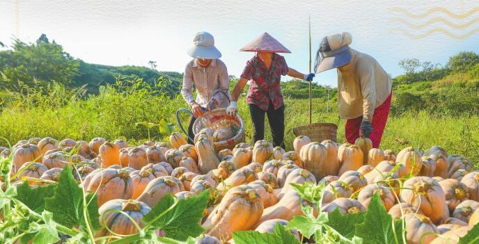 为提升附加值,当地联动妙相源食品、佳佳乳业等加工企业,年加工南瓜原料超5000吨,开发出南瓜面条、馅料、月饼等深加工产品1000余吨。