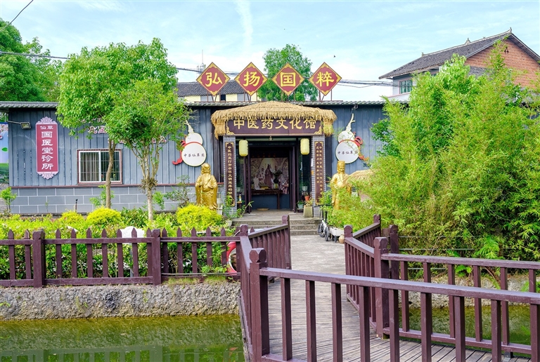 沿着青石板小径深入,古朴雅致的中医养生体验馆与国医堂赫然呈现。