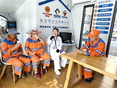 工会驿站不仅给户外劳动者提供基础补给,还延伸出便捷入会、普法宣传、反诈宣传、互助保障等服务,联合街道、社区开展的“送温暖”“送清凉”“送知识”宣传活动更让关爱直达人心。