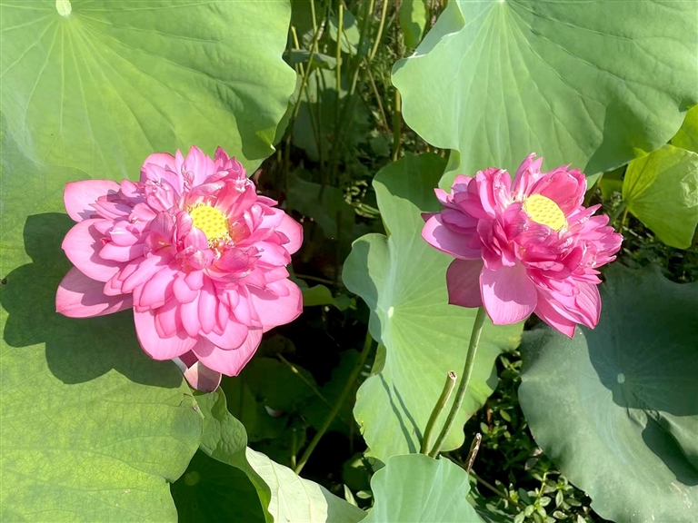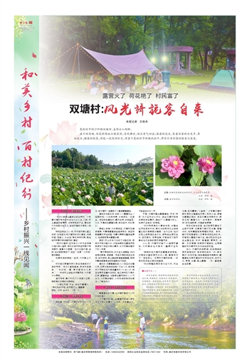 如今,双塘村的田野间,粉白相间的荷花竞相绽放,翠绿荷叶连成一片,微风拂过,叶动花摇,阵阵清香随河岸飘远,露营基地与荷花基地形成良性互动,白天戏水、赏荷、采摘,晚上露营……好一副惬意生活图景。