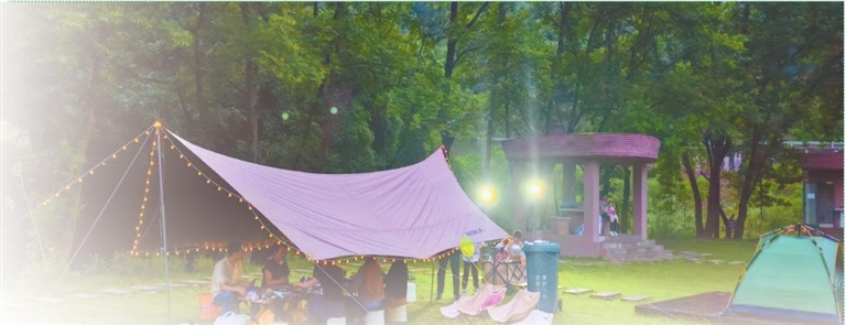 基地紧邻回龙河,设有10个露营平台、2座厕所和3个休闲凉亭,水电供应一应俱全。游客可在基地内,露天烧烤、休闲品茗、戏水,尽情体验露营乐趣,亲近自然、放松身心。
