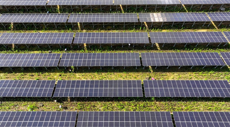“以前这片土地基本都是闲置的,现在上面发电、下面种大豆,一块地两份收益。”在砚台镇白云村“农光互补”光伏发电项目现场,村民们看着整齐排列的光伏板和板下长势喜人的大豆,难掩喜悦之情。