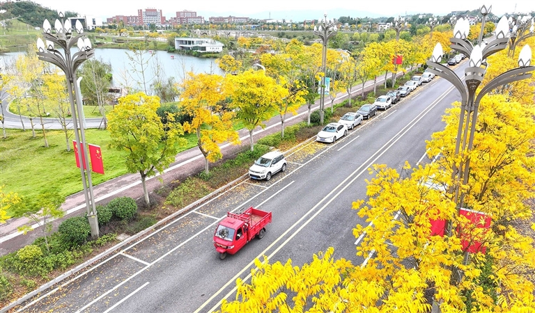初冬时节,城市街景被时光浸染。道路两旁,行道树层层叠叠的叶片将整条街晕染成一条温暖明亮的金色长廊。