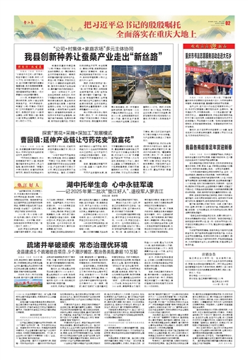 本报讯 (记者 陈舒琪)“以前在外务工收入很不稳定,现在守着这个桑园,年收入达50万元,日子越过越红火。”近日,在沙坪镇双塘村原玲桑葚采摘基地里,连片桑园郁郁青青,养殖户熊建穿梭在桑林间,一边细致查看桑树生长情况,一边分享着返乡创业的增收喜悦。